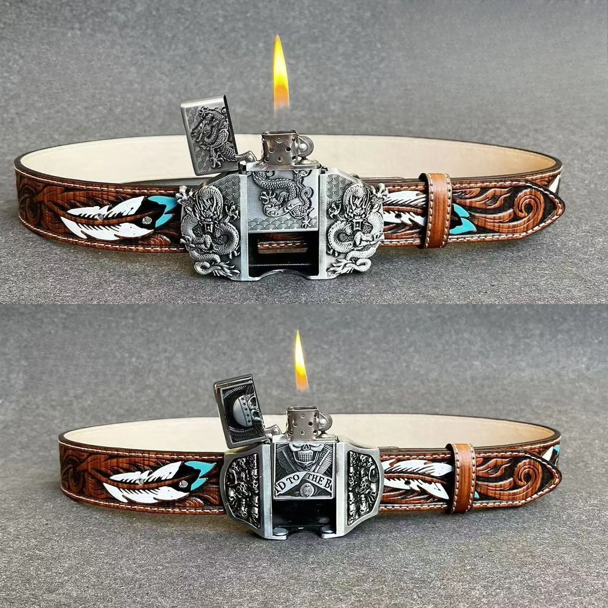 Men's New Trendy Retro Belt Kerosine Lighter Buckle, Personalized and Fashionable Men's Gift