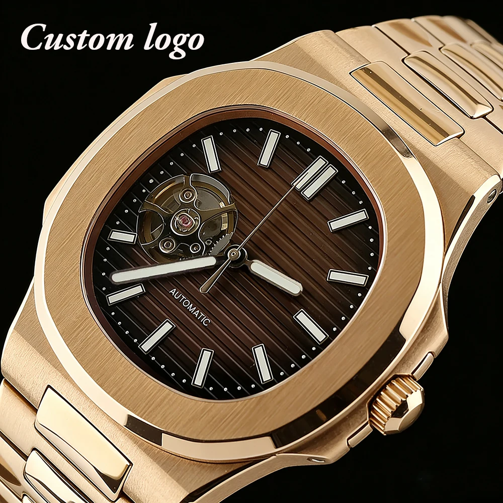 NH38 Watch Men's Automatic Watch Rose Gold Watch Customized Logo Watch Stainless Steel Watch Suitable for NH38 Movement Watch