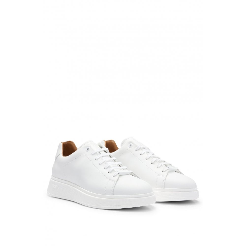 Boss Orange Bulton Runn Mens Polished Leather Trainers With Rubber Outsole - White - Size UK 13 | Boss Orange Sale | Discount Designer Brands